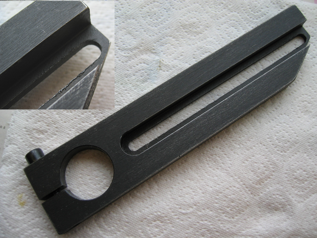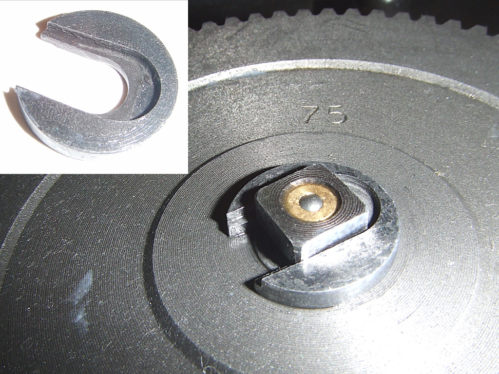 The change wheels are held in place by small circular clips which slide over and behind the square heads on the shafts (7). The shafts are threaded on the ends and screw into t-nuts that slide in the support arm. Whilst this works it does not appear very secure as the circlips are free to slide up and off. So far though they have stayed in place. The circlips are not a standard thickness and fit better on one shaft than the other. I may at some stage investigate an alternative method of securing the change wheels. You may have noticed in photo (6) that the end of the support arm is cut away at an angle so that it can be moved closer to the spindle. Whilst I can see the reasoning, I am not convinced that it needed quite so drastic chamfering so that only a couple of millimetres remain holding the two halves of the arm together.