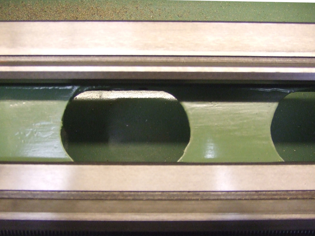 As may be seen from the end on view (3) the tailstock guide is much smaller than the saddle guide. The groove between the prismatic sections and the flat part of the bed is not ground and there is a noticeably rough and sharp edge to both grooves. I carefully removed the sharp corners with a slipstone. The mounting feet are cast integral to the bed and have three mounting holes all on the centre line, two at the headstock end and one at the tailstock. The paint finish on the bed is reasonable but I suspect that there is a good deal of filler in places. I also noticed that the rear of the bed casting carries two machined pads with threaded holes to take a bolt on milling head which is available as an extra (4). I can′t think of an immediate use for these so they will require painting to prevent rusting.