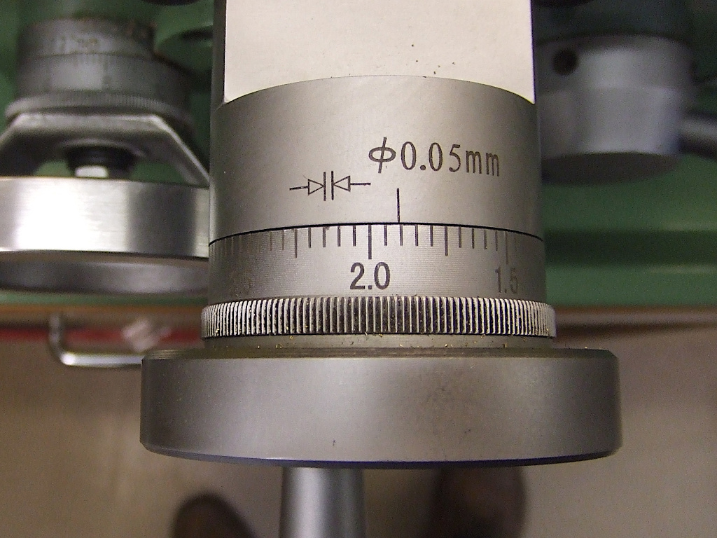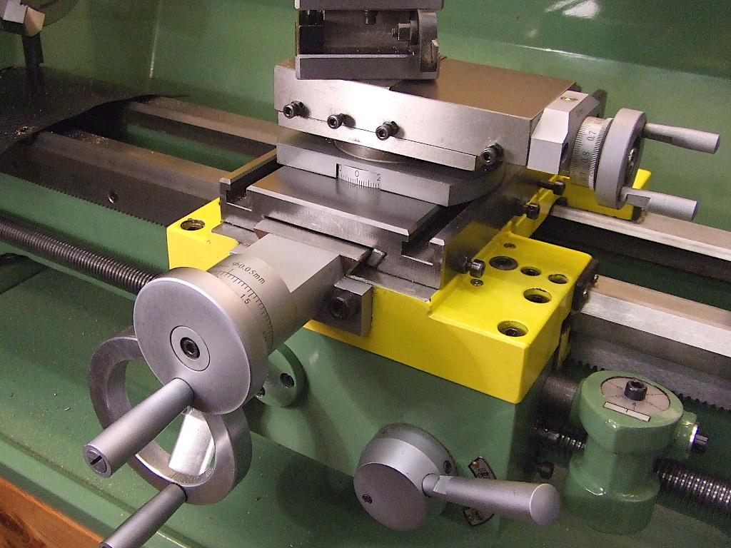 The cross-slide handwheel is fitted with a nicely engraved friction dial, as may be seen from the photo (6) the divisions are 0.05mm. This though is not a true reading as it refers to the diameter (Ø) . That is to say, winding the slide in by 0.10mm will actually take a cut of only 0.05mm. My last lathe had a "proper" dial that indicated the cross-slide movement so it is a matter of getting used to it. I have read that some owners of this lathe have made a direct reading version to replace this dial. (I have got used to this now and find it quite easy to work with.)