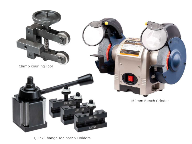 Your nice new lathe unfortunately won′t be able to do much without some extra bits and pieces. You may have received some tooling with the machine but you will definitely need more! Most important probably is something to hold the work and something to cut it with.