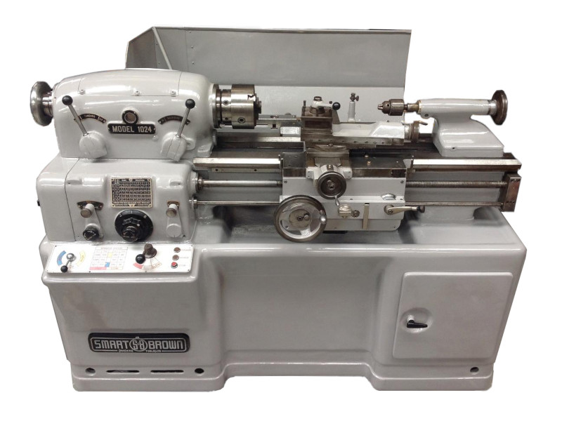 The last machine in this group (14) is a Smart & Brown 1024 Precision Toolroom Lathe. You may have come across the "toolroom" description whilst looking at other lathes, it generally refers to a machine that has been finished to a high standard of accuracy and is of somewhat heavier construction than it′s counterparts, designed as it′s name suggests to make tooling. The 1024 is no exception weighing in at around the 1200kg mark despite being only 250mm (10") swing. The bed is very wide compared to other lathes affording good stability to the carriage and the cabinet stand is cast iron which is where some of the weight comes from. To a certain extent the heavier the lathe the more rigid and less prone to vibration it is helping to achieve a fine finish. Weight also tends to impart stiffness which helps with repeatability and accuracy. The later versions of this lathe had variable speed drive. The image is from lathes.co.uk have a look for more information. If you can find a good one your workshop will be able to "turn" out top grade work in perpetuity.