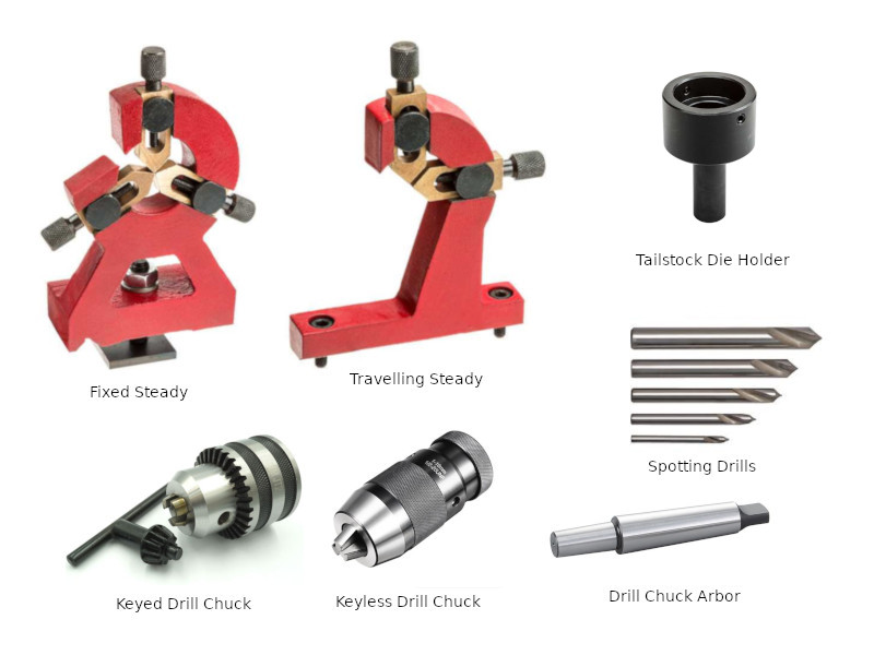 Chucks and cutting bits are the most important things you will need for your new lathe but there are plenty of other necessities to help grow your tool collection. Don't try and get everything at once though just add slowly as needed. The next set of images show just a few useful extras that you may need. Please note that the items shown are not necessarily at the same scale.