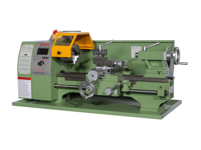 The lathe shown in image (9) above is the Toolco 1016V a badge engineered WM240. Sizewise the lathe is 240mm (9½") swing and 400mm (16") between centres, 3MT in the spindle with a variable speed 750w DC motor. Similar lathes are available from other suppliers and it it worth comparing specifications carefully before purchase. Variations from supplier to supplier include: different motors, extra chucks, steadies, different drive trains, automatic feeds, lead-screw gearbox etc. The larger lathes in the range tend to benefit from power cross-feed and VFD motor drives. Most of these lathes can either be purchased for bench mounting or with a cabinet stand to suit.